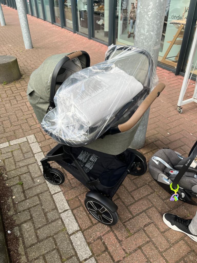 Wat meerdere kinderwagens naast elkaar gezet die we mooi vinden en op de hoogste stand gezet voor ons als vader. Daar vielen eigenlijk gelijk al een paar af, die gewoon te laag zijn voor ons en wij krom achter lopen. Na nog twee over te houden, is de keus op onze favoriet vanaf het moment dat we binnen kwamen gevallen. Dus die kunnen we gaan bestellen en in september gaan ophalen.